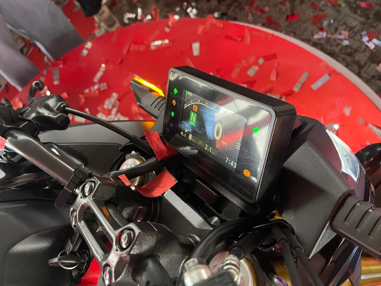 Una de las grandes novedades es el nuevo tablero digital TFT a color. Esta característica hasta hace poco estaba reservada a modelos de mayor cilindrada. Este panel ofrece una visualización nítida en cualquier condición de luz. Muestra información completa: tacómetro, velocímetro, indicador de marcha, nivel de combustible, reloj, temperatura y consumo promedio.