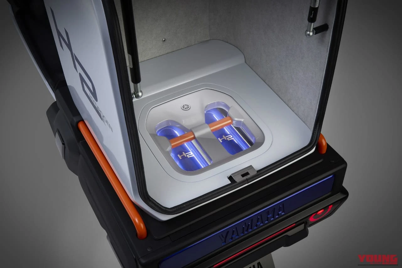 Según las especificaciones filtradas, esta motocicleta conceptual integra un depósito compacto de alta presión diseñado específicamente para su uso en vehículos de dos ruedas, desarrollado por Toyota. Yamaha afirma un alcance cercano a los 100 km por tanque, lo cual la posiciona como una opción viable para entornos urbanos e interurbanos.