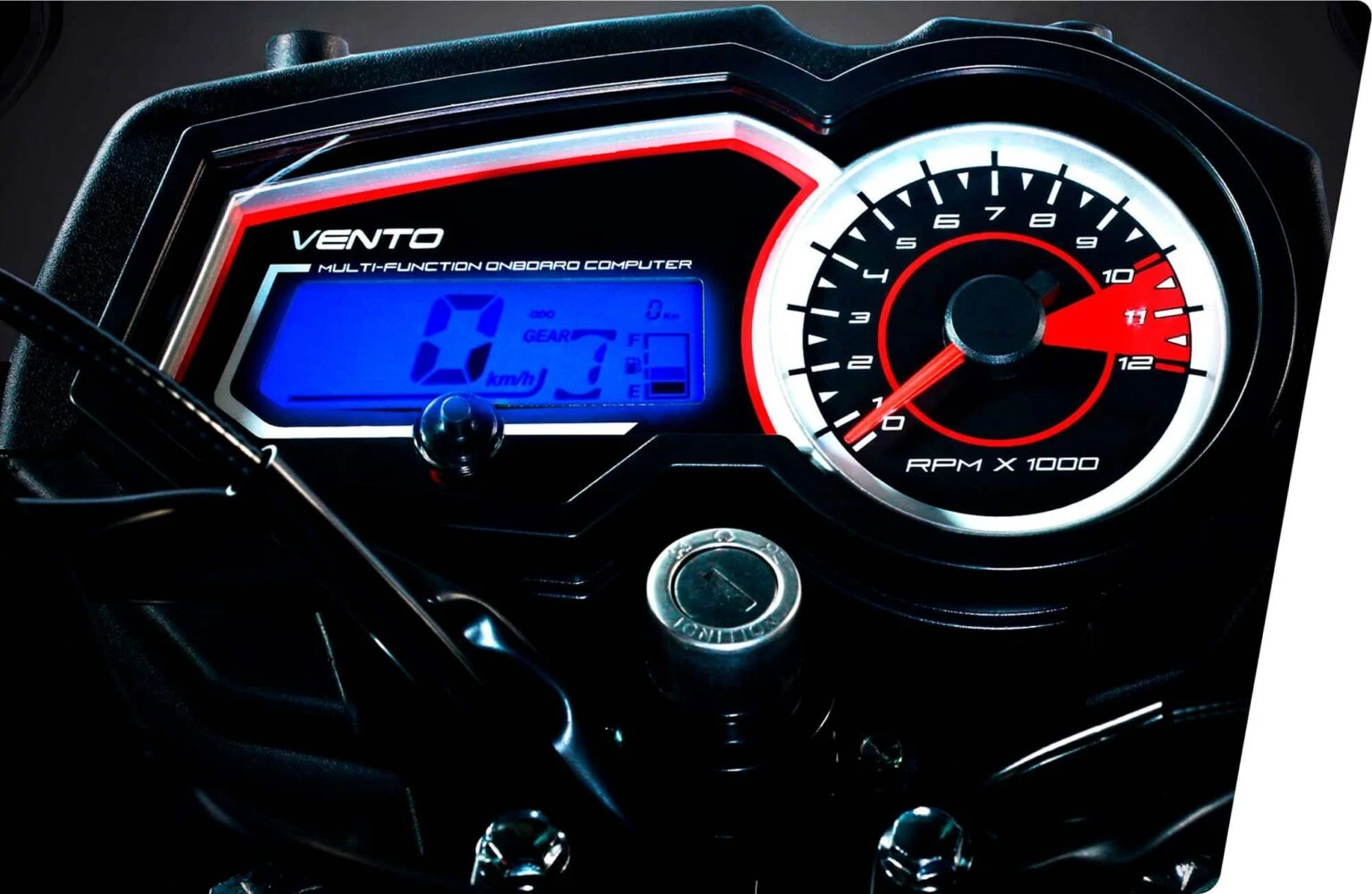 En cuanto a la parte ciclo, cuenta con una horquilla hidráulica delantera y un sistema de doble amortiguador trasero, configurados para absorber las irregularidades de las vías colombianas. La seguridad está respaldada por un freno de disco delantero y un tambor trasero asistido por el sistema CBS (frenado combinado), una característica obligatoria que Vento integra para garantizar detenciones más estables y cortas.