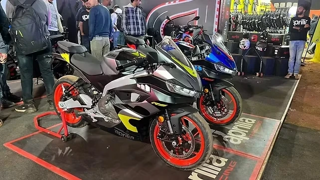 Aprilia desvela en la India Bike Week los nuevos colores de la RS 457: Amarillo Arsénico, Azul Serpiente y Racing Replica.