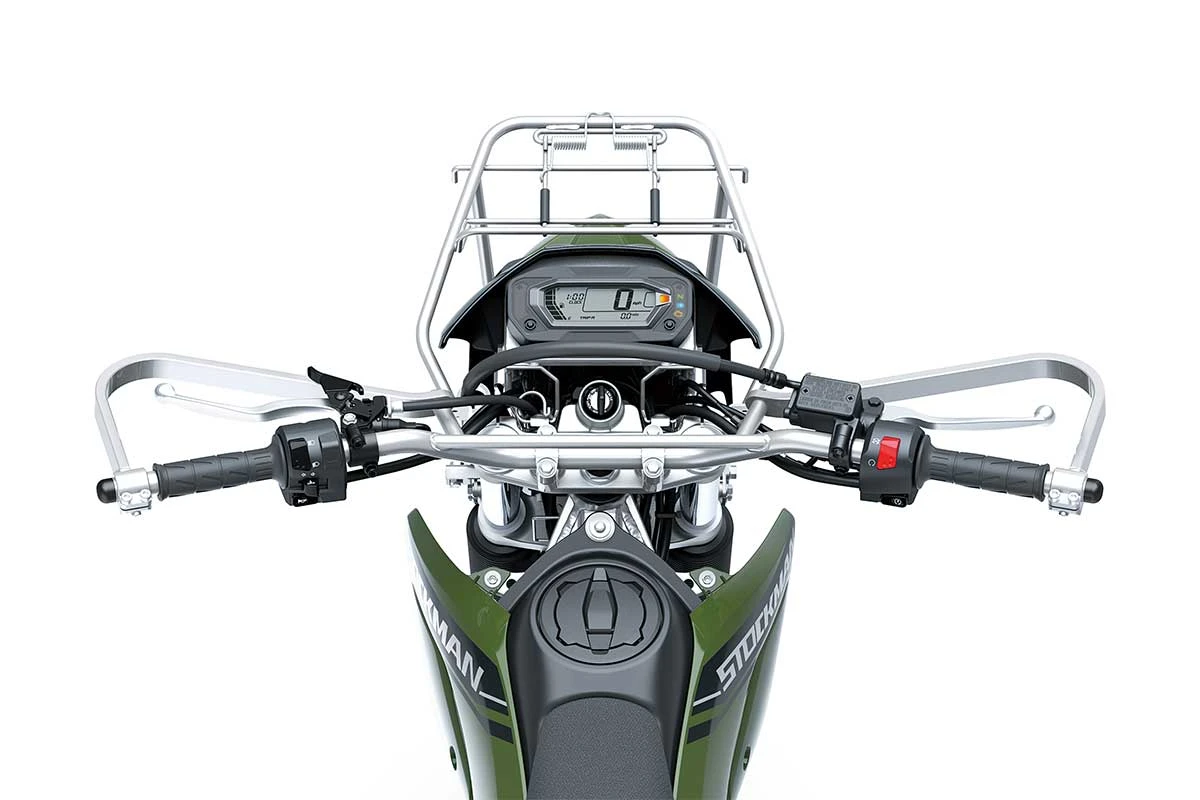 Uno de los grandes diferenciales de esta versión es su enfoque utilitario. La KLX 230 Stockman incorpora: