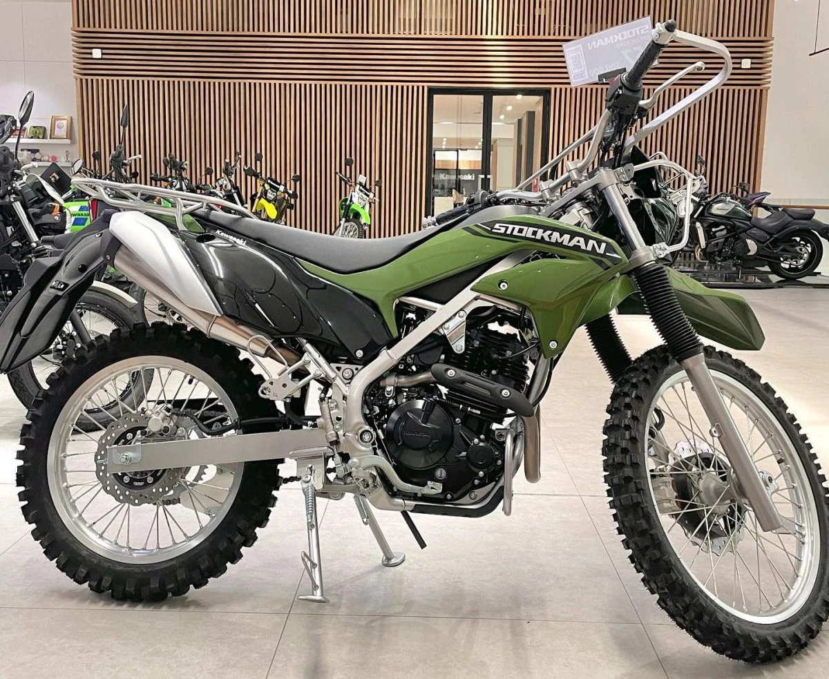 Se trata de la Kawasaki KLX 230 Stockman, una versión presentada en mercados internacionales que apuesta por la durabilidad, la practicidad y el uso diario en entornos rurales, algo que pocas marcas se atreven a explorar con motos de esta cilindrada. Y sí, aunque mantiene la base mecánica conocida, los cambios van mucho más allá de lo estético.