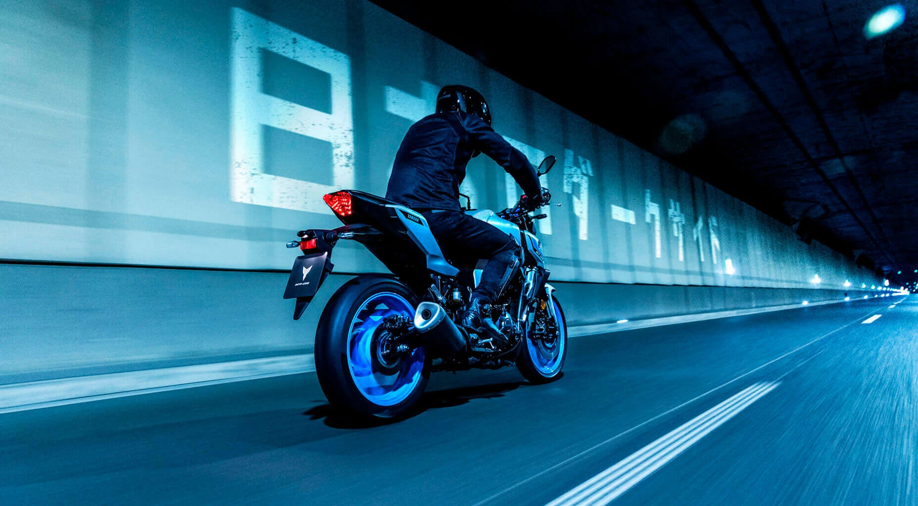 El frontal conserva su distintivo faro LED central con firma luminosa agresiva, heredado del lenguaje “Dark Side of Japan”. Este concepto visual, que define a la familia MT, busca transmitir una sensación casi futurista, urbana y desafiante.