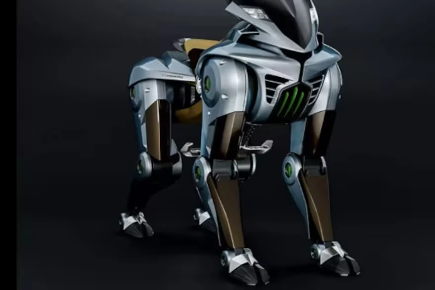 El Corleo es un concepto desarrollado por Kawasaki que abandona por completo las ruedas tradicionales. En su lugar, cuenta con cuatro patas robóticas articuladas, cada una terminada en una “pezuña” con goma antideslizante, algo más cercano a un animal o un robot que a una motocicleta.