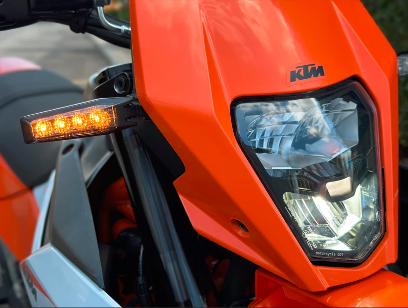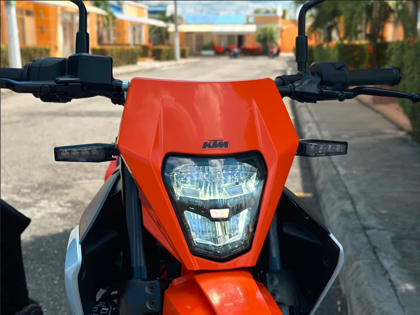 Las luces para este tipo de motos son buenas, nos faltó intensidad en plenas, es digna de una Supermoto. En caso de una varada, solo con tener la moto en movimiento la luz DRL enciende, no es necesario tener el suiche abierto, de hecho, es muy pequeño, en algo sirve.