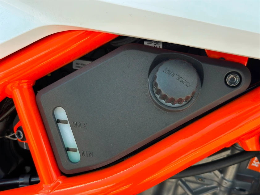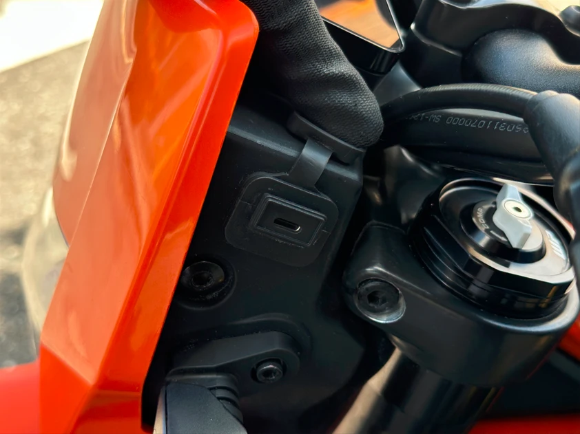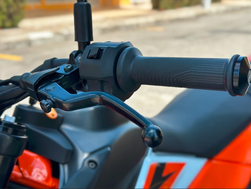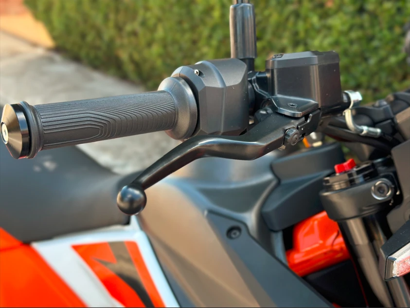 En cuanto a mandos y conectividad, KTM se fue fino. Los switches te dejan navegar por el menú sin mirar la mano. El nuevo joystick lateral hace que moverse entre opciones sea rapidito: cambiar el modo ABS, ajustar las ayudas electrónicas, modificar brillo del tablero, o activar funciones de viaje. Los habituales se tienen: encendido de la moto y el interruptor de corriente. Direccionales y pito…