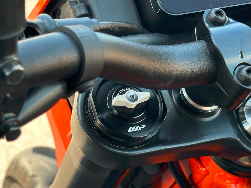 A mi me hubiese gustado que el manubrio, cabrilla o manillar viniese algo más alto. No es tan cómoda, es perfecta para entrar a la pista, al mundo de supermoto, para un viaje de 100 – 150 km cobra factura y si nos vamos para el acompaña ni qué decir. Es castigadora puesto que su origen no es ese. Por ese lado no tenemos grandes calificaciones.
