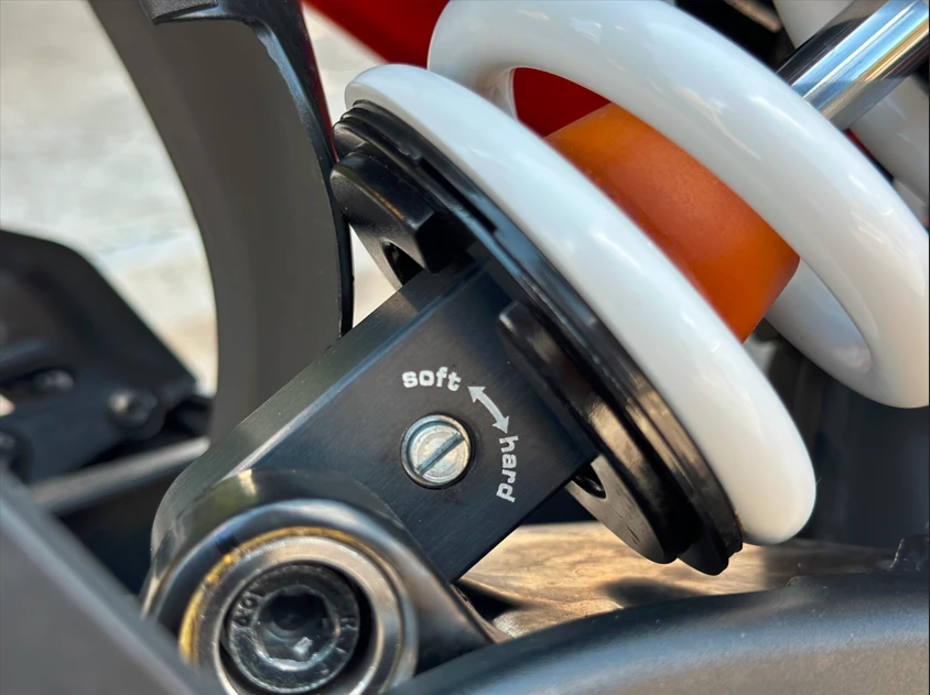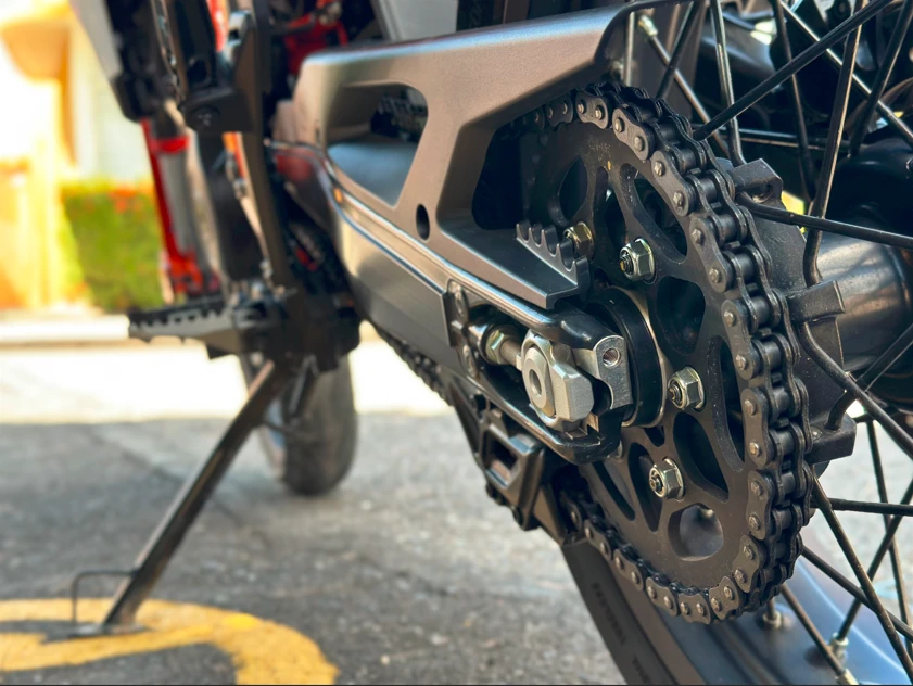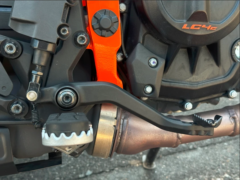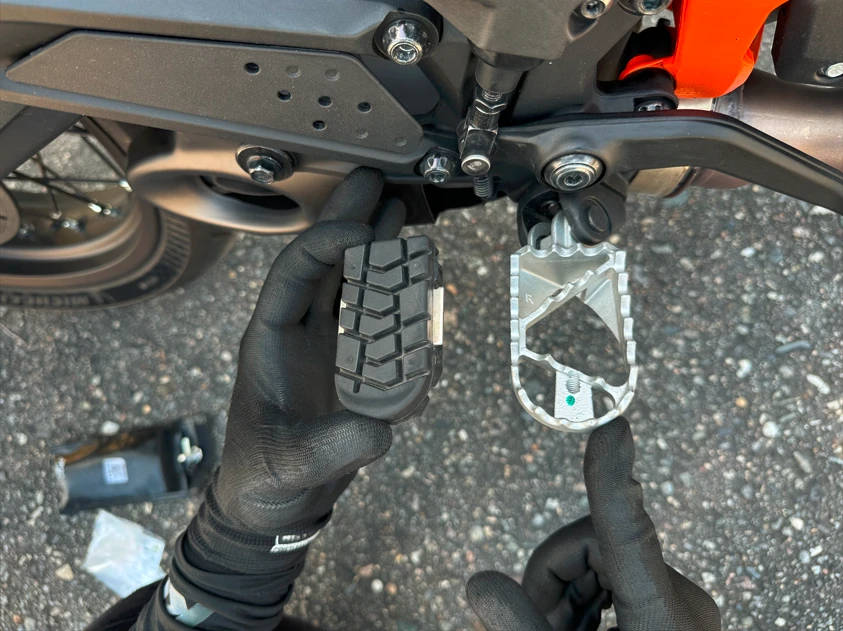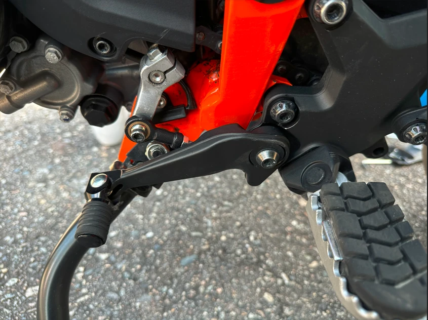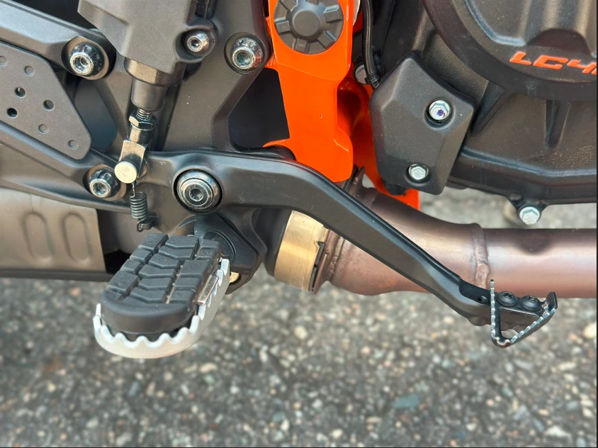 Los posa pies son de gran agarre, lo percibimos, estos garantizan que los pilotos tengan un punto de apoyo ininterrumpido al cambiar de marchas o al trazar curvas cerradas. También son ajustables en dos posiciones.