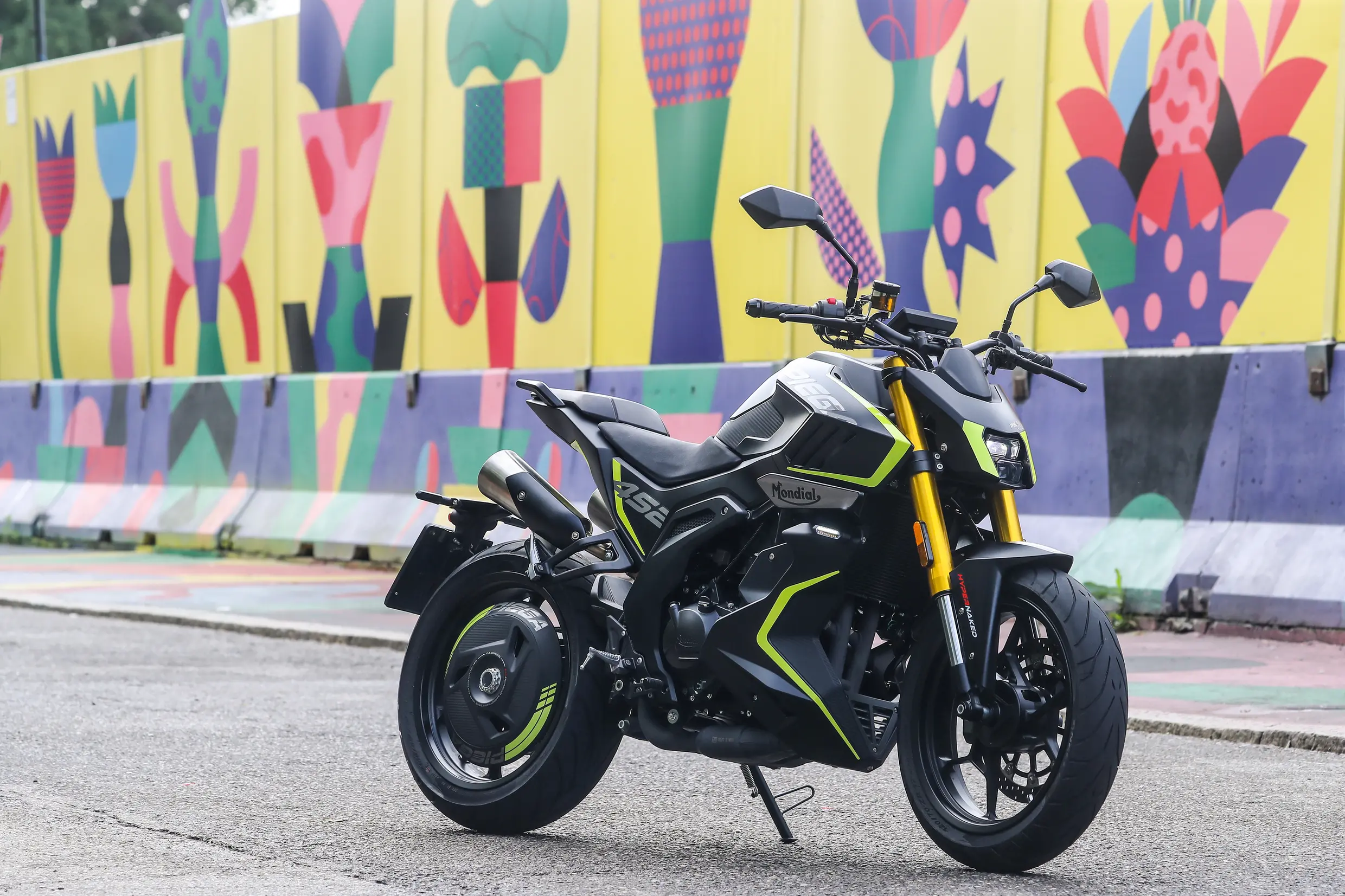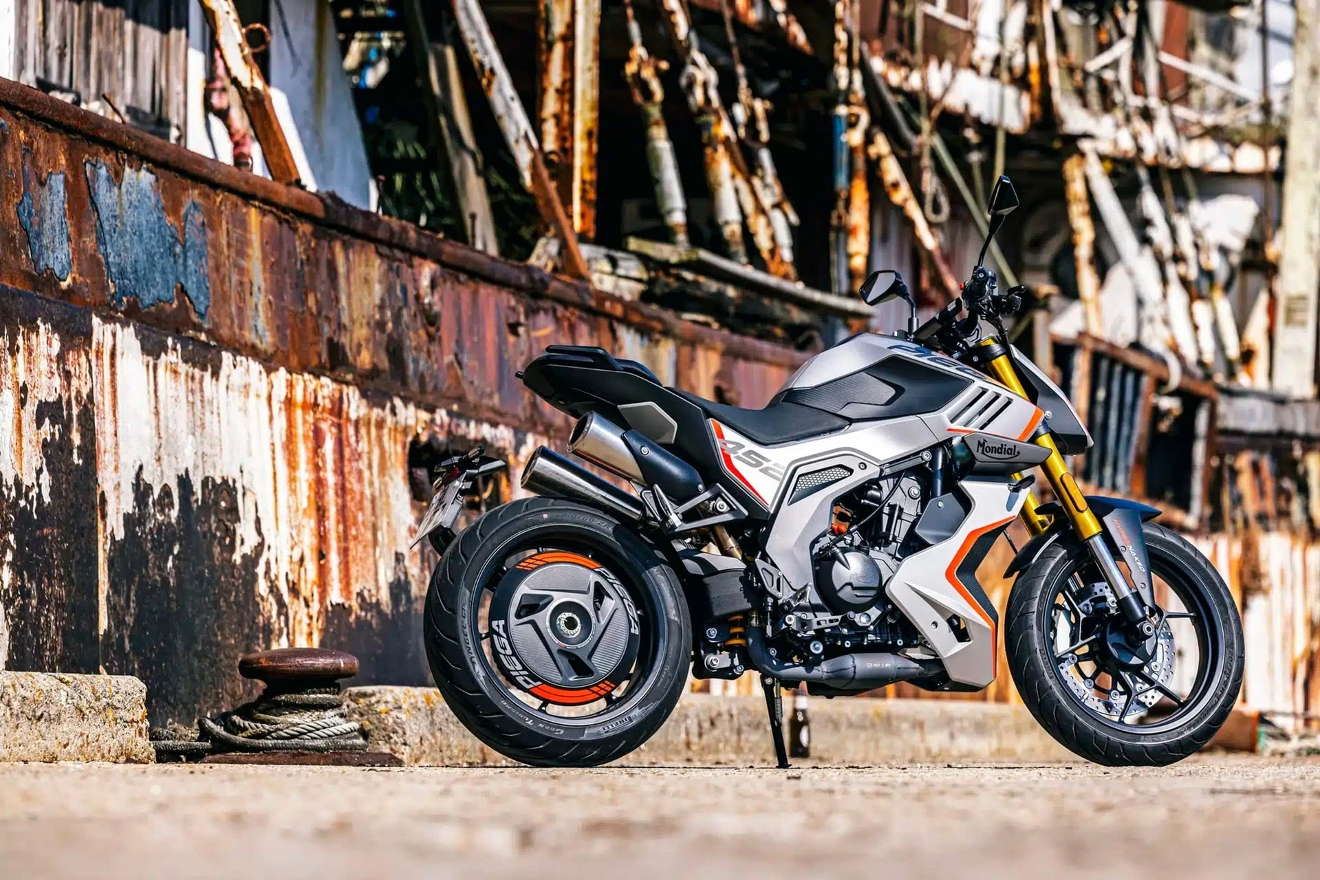 Su aspecto es agresivo: cuerpo afilado, deposito prominente, colín corto, doble escape bajo asiento y mix de estilo italiano moderno. En términos de equipamiento incluye pantalla TFT con conectividad de smartphone, control de tracción, ABS y otros sistemas electrónicos que elevan su nivel.
