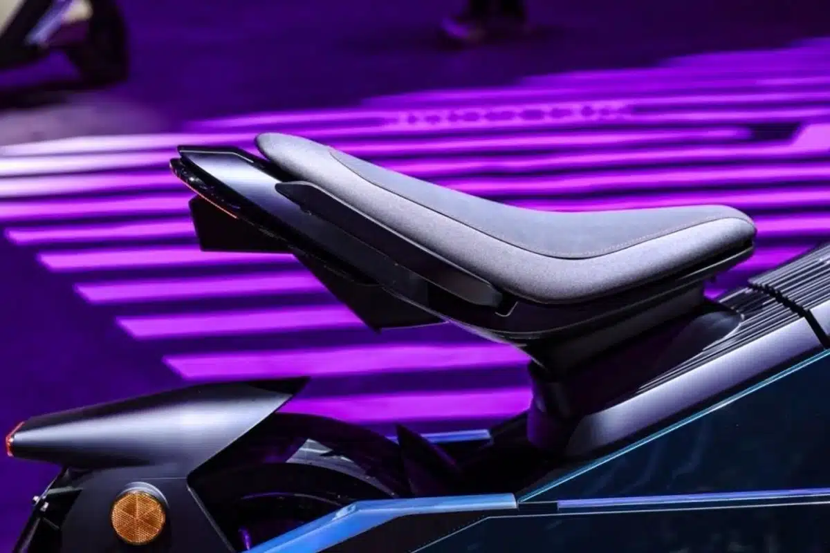 Por último, el asiento es regulable en altura y está diseñado “al aire”, lo que le da un aspecto ligero y minimalista. El faro delantero va bajo un parabrisas ahumado que refuerza su estética futurista.