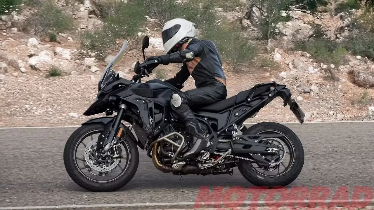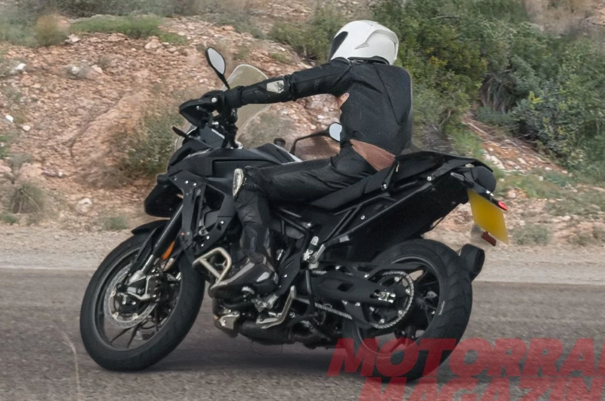 Las primeras fotos espía muestran un frontal que recuerda a la Tiger 1200. Un pequeño faro proyectores y una nariz (beak) rediseñada se integran de manera más elegante con los tank shrouds. Este cambio no solo moderniza la estética. También mejora la aerodinámica y la protección del piloto.