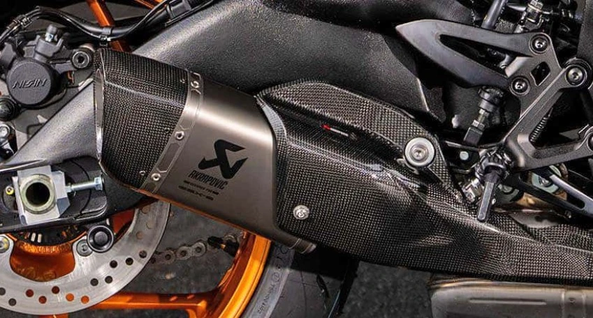El rugido de esta edición especial tampoco será el de una moto común. Para esta ocasión, la marca ha sellado una alianza con el gigante Akrapovic, instalando un silenciador exclusivo acabado en fibra de carbono que promete una melodía celestial (o infernal, según se mire) cada vez que el cuentavueltas suba de revoluciones. Es un sonido que hará que los vecinos se pregunten qué demonios acaba de pasar por su puerta.
