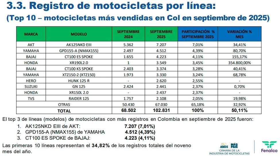 En septiembre 2025 se vendieron más de 102.000 motos en Colombia. Te contamos cuáles fueron las marcas, líneas y regiones que lideraron el mercado.