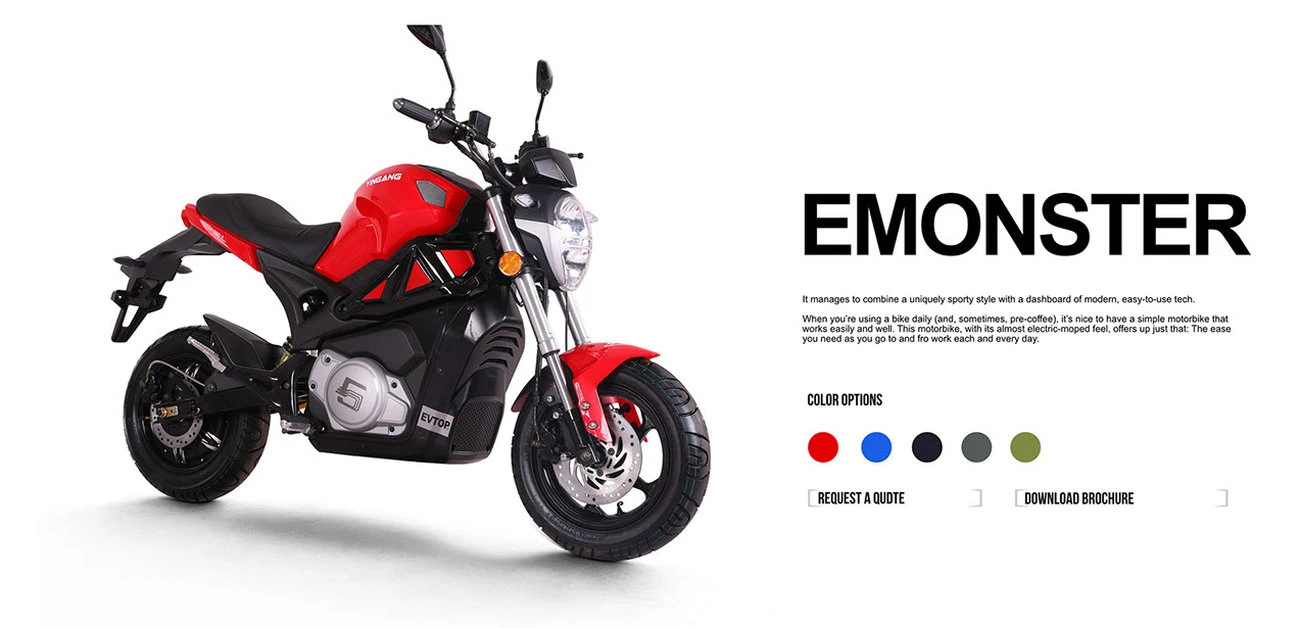 Entre su catálogo destaca una línea bautizada como “Monster”, con un diseño que reproduce sin disimulo los trazos de la Ducati Monster: tanque alargado, faros redondos, estética naked-muscular y hasta una paleta de colores similar.