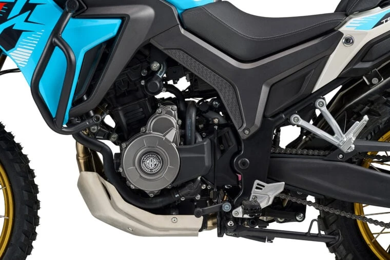 Según información publicada por medios especializados europeos, la T502XR está impulsada por un motor bicilíndrico en línea de 500 cc. Este motor está refrigerado por líquido y tiene una potencia cercana a los 47 Hp. Es el mismo propulsor que encontramos en modelos como la Benelli TRK 502X. Esto confirma la sinergia tecnológica entre las marcas pertenecientes al grupo QJMotor.