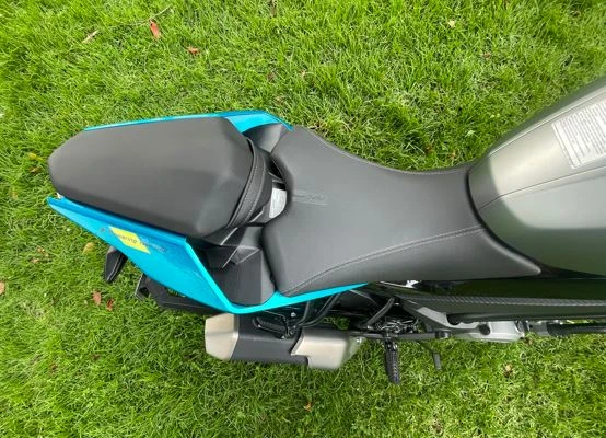 Su parte trasera es curiosa, bien deportiva aunque sea de calle, tiene unas entradas que por diseño se ven geniales, pero en confort tallan, el acompañante sufre y sufre bastante. No tiene agarraderas, de hecho, vienen es incorporadas con la estética de la cola.