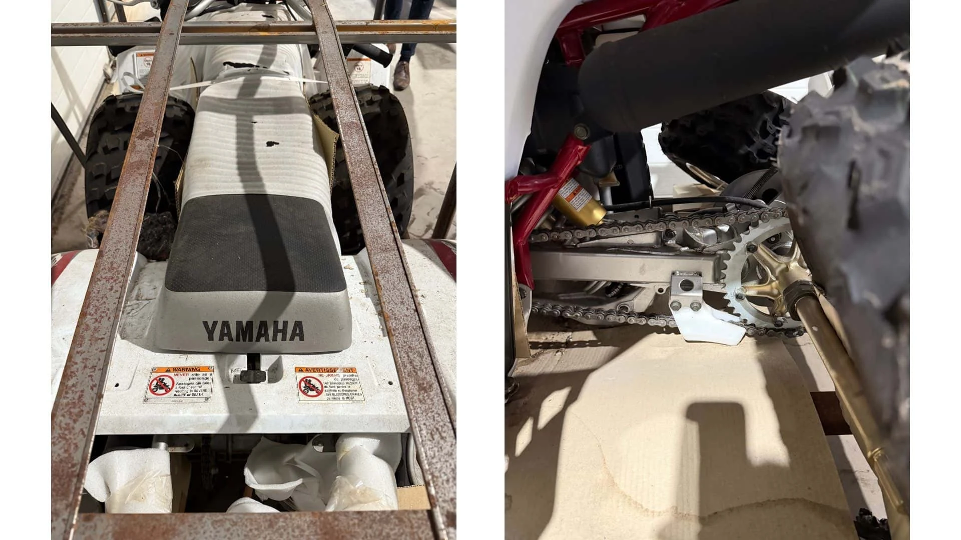 En el caso de esta Yamaha YFZ350SW, todo apunta a que fue almacenada como stock sin vender y quedó olvidada hasta reaparecer recientemente, convertida hoy en una auténtica joya.