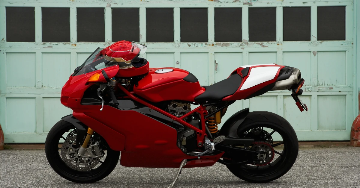 El esquema de colores, dominado por el rojo Ducati, refuerza su identidad racing, mientras que los plásticos estrechos y el asiento plano facilitan el control en conducción extrema. No es una moto pensada para lucirse en la calle, sino para rendir en el circuito.