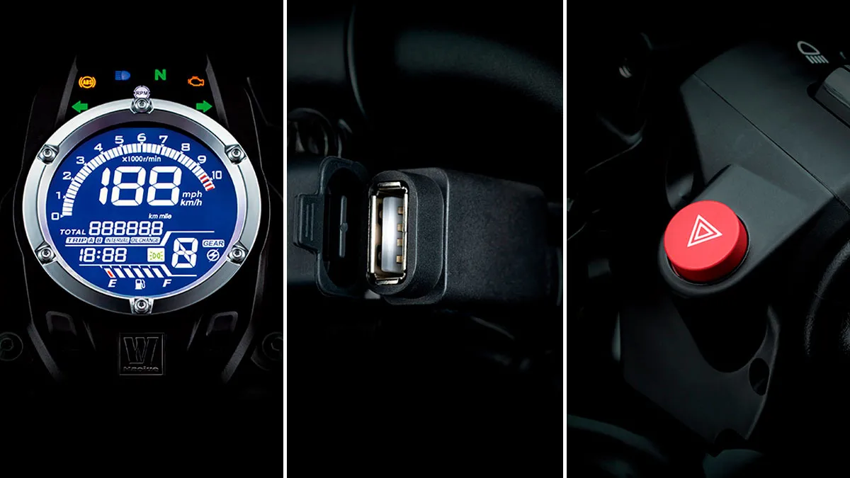 - Dimensiones: una altura de asiento accesible de 780 mm y un peso liviano de solo 137 kg, lo que facilita las maniobras en ciudad y fuera de ella.