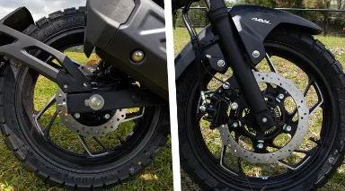 - Frenado: discos en ambas ruedas, destacando el sistema ABS doble canal para evitar bloqueos en frenadas de emergencia.