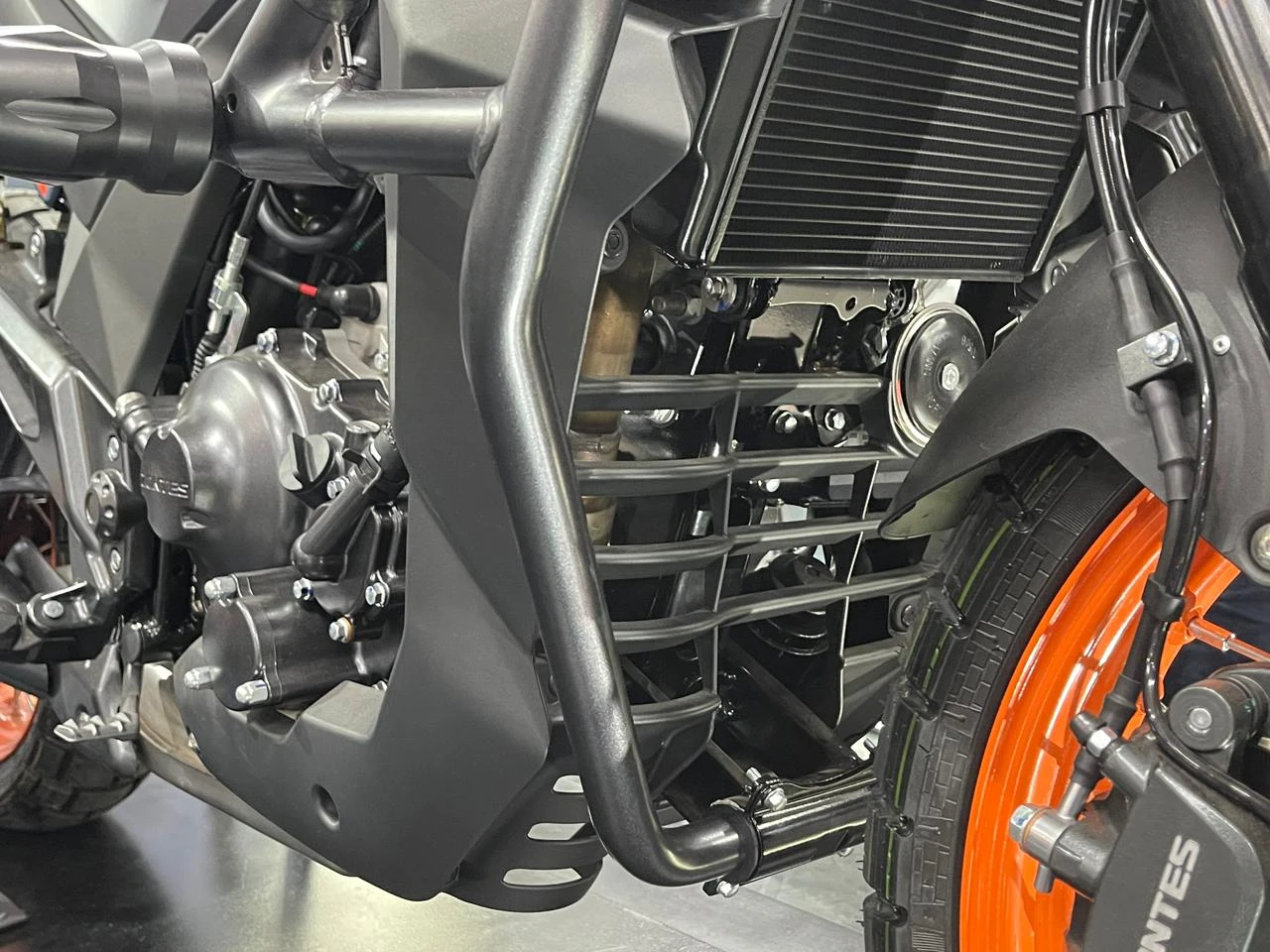 Su sistema de iluminación Full LED —presente en faro delantero, direccionales y stop— no solo mejora la visibilidad, sino que refuerza su apariencia moderna. Además, viene equipada de fábrica con defensas laterales. Este detalle demuestra la atención de Zontes en ofrecer motos listas para rodar sin necesidad de accesorios adicionales.